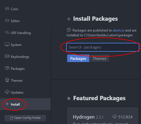 Platformio is a plugin for the atom editor, we're going to install that next. In the atom editor click on install a package.